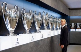 底蕴这一块!为震慑对手,皇马在进伯纳乌通道中展示15座欧冠奖杯