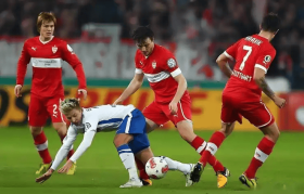 德甲第23轮战罢,保级大战圣保利2-1力克不来梅,成功踩着对手逃离降级区。斯图加特遭垫底的海登海姆3...