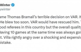 记者谈维拉进球被吹:裁判整体水平仍需提高,维拉愤怒是合理的