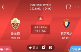 北京时间2026年2月14日凌晨4点,西甲联赛第24轮将上演一场关键对决。深陷降级区边缘的埃尔切坐镇...