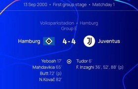神巧合!尤文上次在欧冠4-4是00年踢汉堡,科瓦奇、图多尔均破门