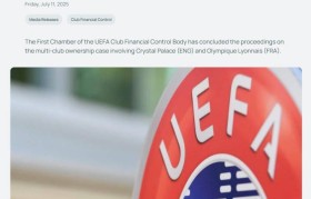 北京时间7月12日消息,昨晚,欧足联官方宣布,水晶宫和里昂因违反欧足联俱乐部比赛条例第5条规定的多俱...