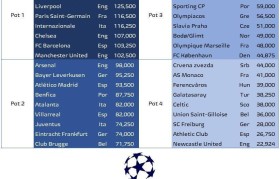 新赛季欧冠分档预测:皇萨仁军城一档 枪手尤文二档 纽卡四档