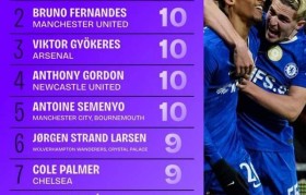 1-Squawka统计2026年英超球员参与进球榜:若昂·佩德罗13球居首的数据机构Squawka统...