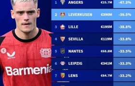 直播吧9月7日讯《转会市场》统计了今夏转会窗过后的总身价下降比例情况,昂热居首,法甲7队在列。德转列...