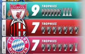 欧战冠军数排行:皇马17冠遥遥领先,利物浦9冠,米兰拜仁塞维7冠